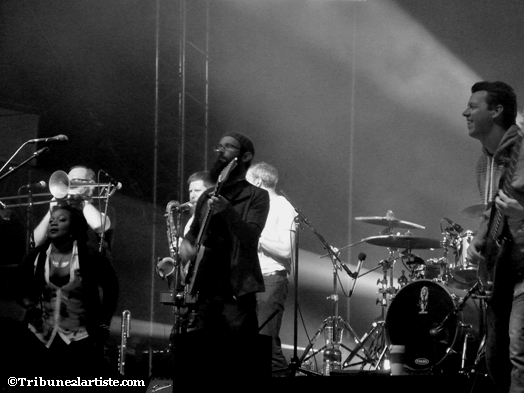 Soul, soul, soul ! Voilà un groupe qui claque comme ceux que l’on voit du côté du Sud des USA. Le groupe composé de musiciens nantais envoie du lourd avant l’entrée en scène de Tina Turner, euh… Toni Green. Chevelure blonde ondulée, tenue sexy blanche, la ressemblance est frappante ! Et côté voix, T. Green assure. Elle s’inscrit dans la lignée des Sharon Jones, Naomi Shelton et consorts. Jouant avec le public avec ses mimiques typiquement soul, elle donne une dimension à ce concert. Les musiciens de leur côté assurent le show avec des solos bien sentis.